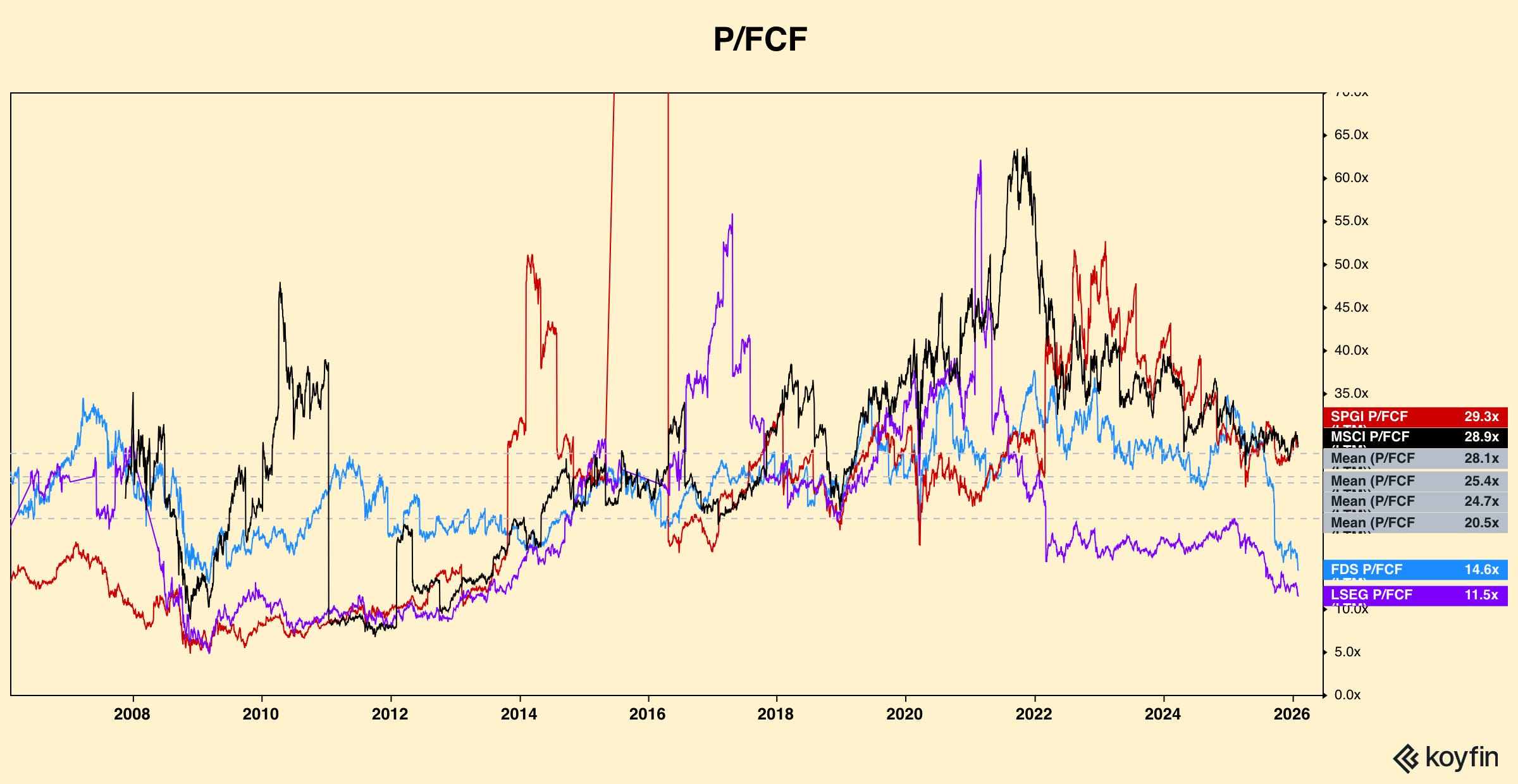 In the past, growth was driven by increasing seat counts and deeper penetration with existing clients, new modules, and small bolt‑on acquisitions of niche datasets or analytics vendors. Today, FactSet is experiencing cost‑cutting at its client base, who choose to reduce seats and experiment with AI. It will take some time for this trend to play out. However, in the end, I see two things happening. First, FactSet’s customers will realize that there is no substitute for quality data. Second, FactSet will develop agentic AI functionality on its platform. The result would be a re‑rating in the opposite direction.