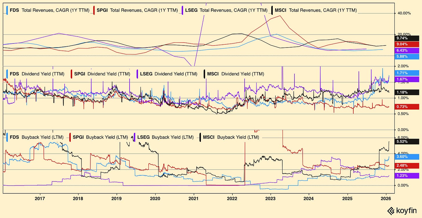 Capital allocation has historically been disciplined: tuck‑in acquisitions to expand data coverage and analytics capabilities, combined with ongoing investment in R&D and content.